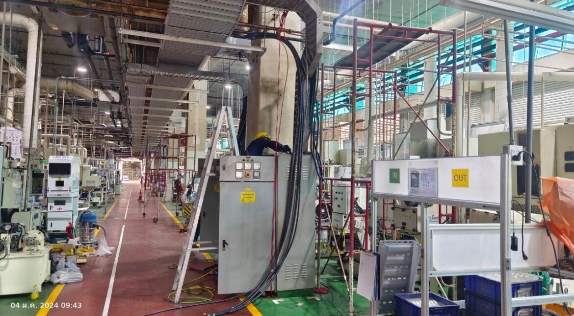 OUR SERVICE HomeServiceงานระบบไฟฟ้าภายในโรงงาน บริการออกแบบ ติดตั้ง ซ่อมแซม และบำรุงรักษาระบบไฟฟ้าภายในโรงงานแบบครบวงจร 2.1 รับติดตั้งโคมไฟระบบแสงสว่าง (Lighting System)2.2 รับติดตั้งพาวเวอร์ปลั๊ก และโคมไฟกันระเบิด (Explosion-proof Power Plug & Lighting)2.3 เดินสายเมนไฟฟ้าให้กับเครื่องจักร (Main Power Supply Machine)